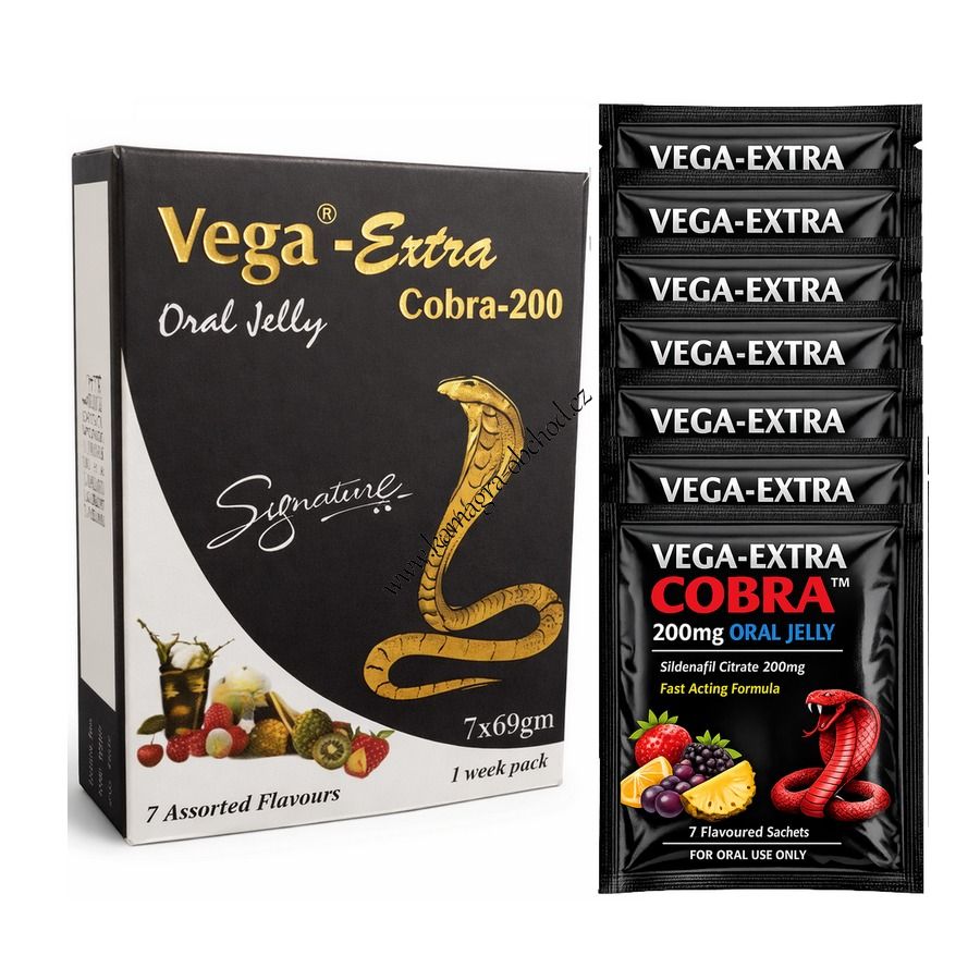 Vega Extra Oral Jelly 200mg je nejrychlejší a nejsilnější náhrada ,, generikum Viagry, obsahuje stejnou účinnou látku jako Viagra a to Sildenafil Citrate ale v dvojnásobném množství.